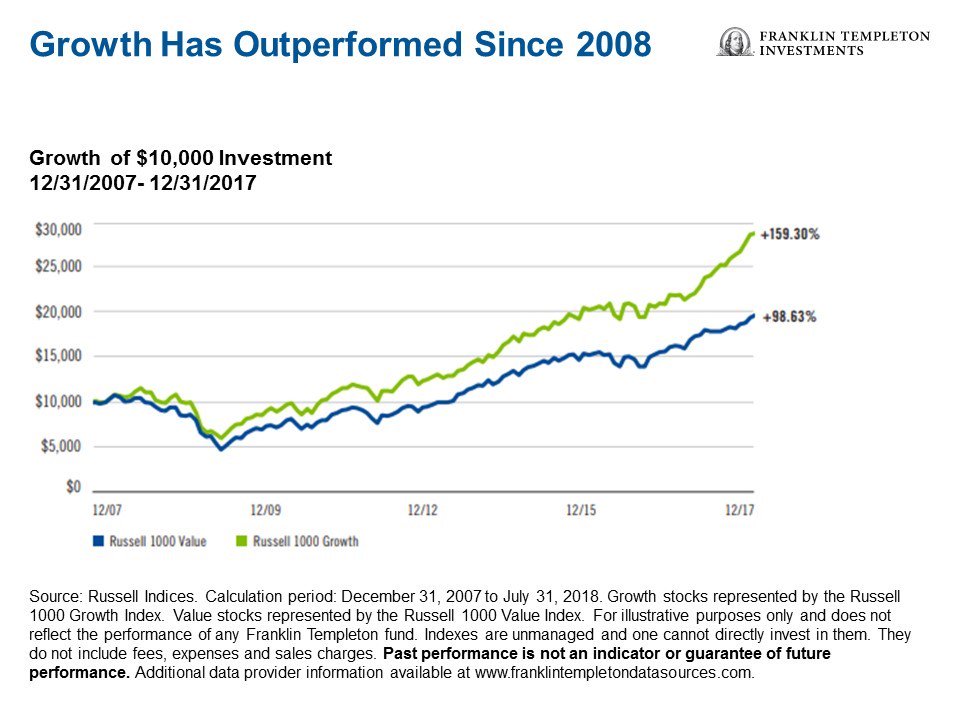 Since 2008, US growth stocks in faster-growing sectors such as technology have taken the spotlight away from value stocks