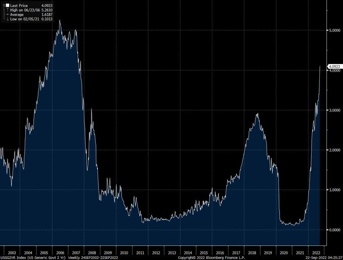 Two year yields at 4.09% highest since October 2007. |