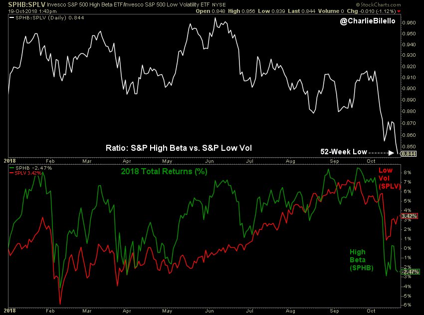 Ratio of High Beta stocks to Low Volatility stocks hits a 52-week low. Defensive behavior
