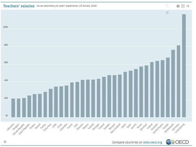 Where are teachers paid the most?