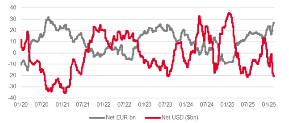Euro net long positioning is even more extreme than US dollar shorts.