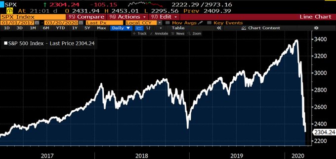 US stocks hit new coronavirus low, erasing more than 3 years of gains