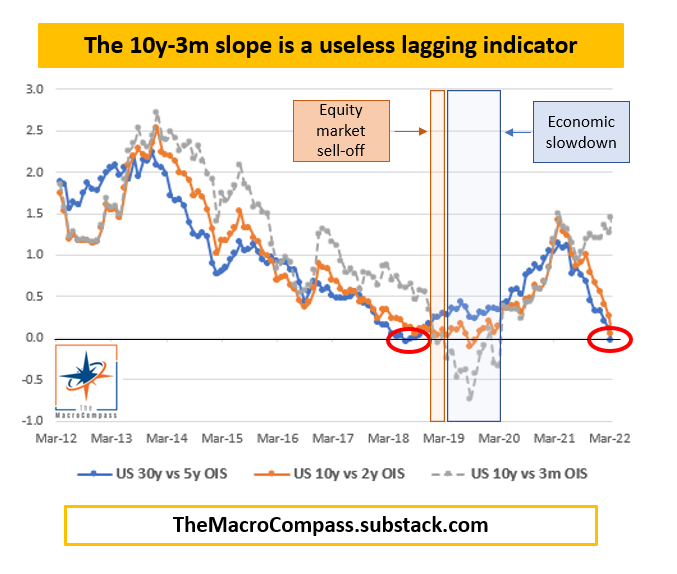 The 10y-3m yield curve slope is a useless lagging indicator.