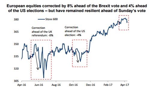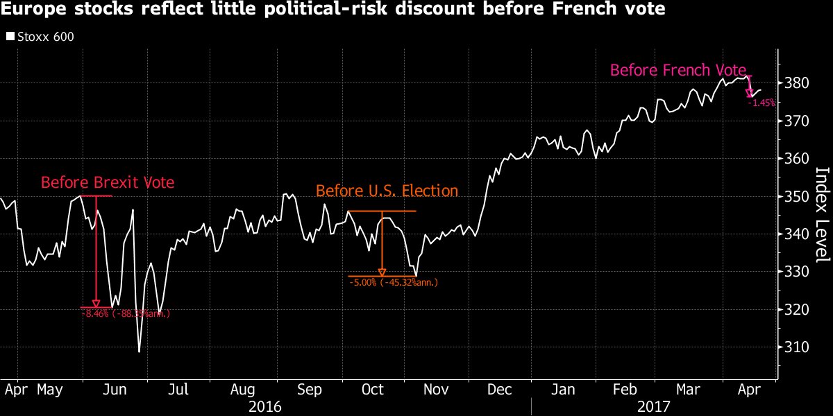 European stocks are showing little sign of investor concern before France's election
