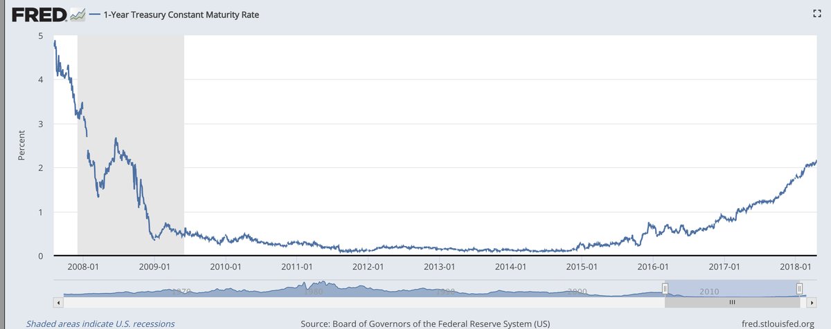 This chart shows the 1-Year Treasury Rate. It's at its highest levels since 2008
