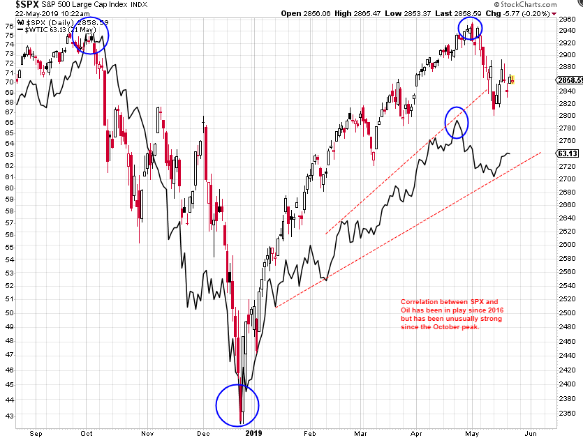 The strength of the correlation between SPX and OIL is impressive and the 2 continue to trade together on the daily