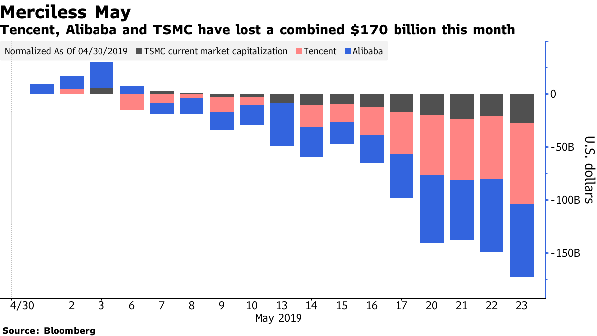 The emerging world's three biggest stocks are now down $170 billion