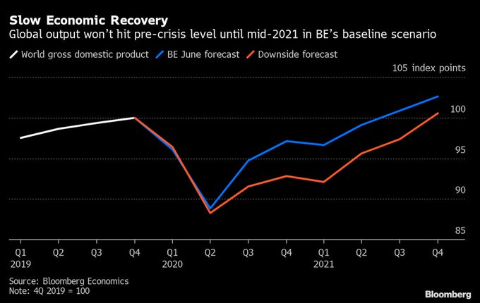 Bloomberg Economics’ June baseline forecast sees global economic output contracting 4.7% this year