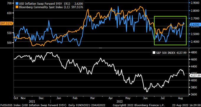 Inflation expectations (blue) and Bloomberg - Commodity Spot