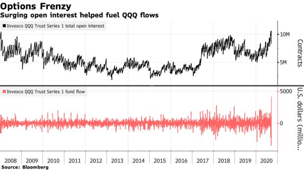 QQQ’s combined call and put open interest totaled 10 million