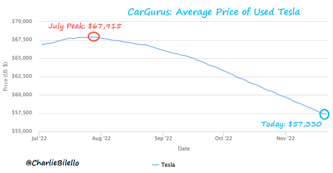The average price of a used Tesla is now over $10k lower than the peak in July.