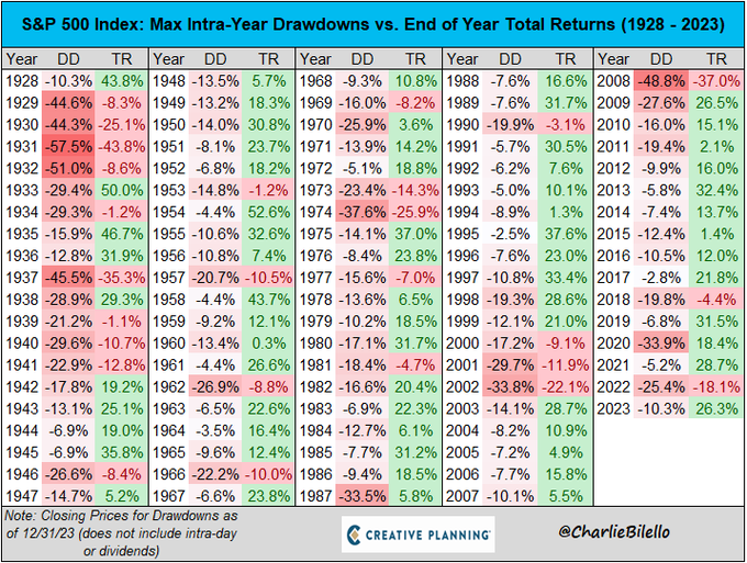 The S&P 500 has returned 9.8% annualized since 1928 with an