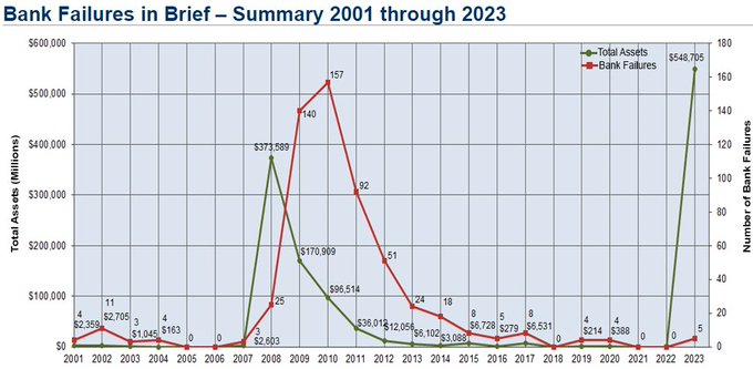 failed banks in 2023 ($548 billion) would exceed 2008’s