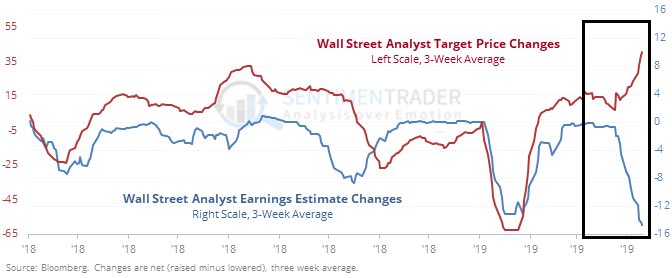“Wall Street analysts have been raising price targets on stocks within the S&P 500. At the same time, they’ve been lowering their earnings estimates”