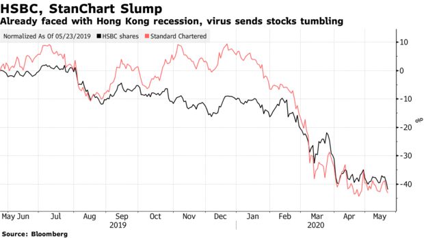 U.K.-listed banks with heavy exposure to Hong Kong slip as