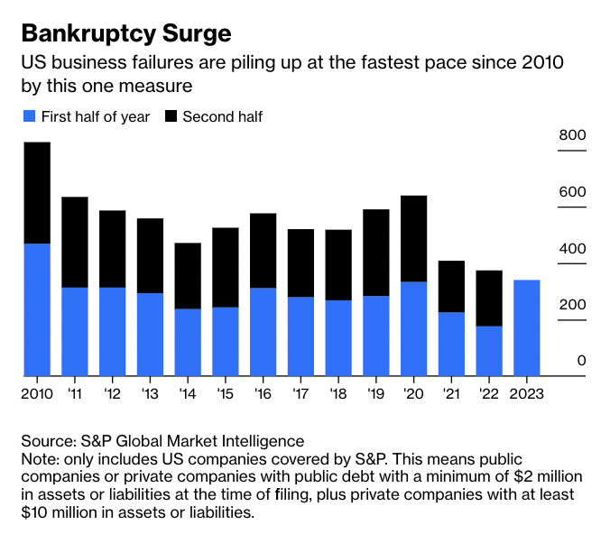 US business bankruptcies are at the fastest pace since 2010, per Bloomberg: