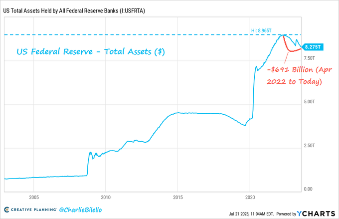 The Fed's balance sheet hit its lowest level since August 2021 this week, down $691 billion from its peak in April 2022