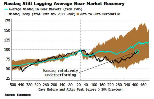 Nasdaq is still lagging the average bear market recovery performance, per Bloomberg