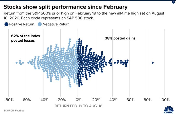 62% of stocks in S&P 500 are lower now vs Feb 19