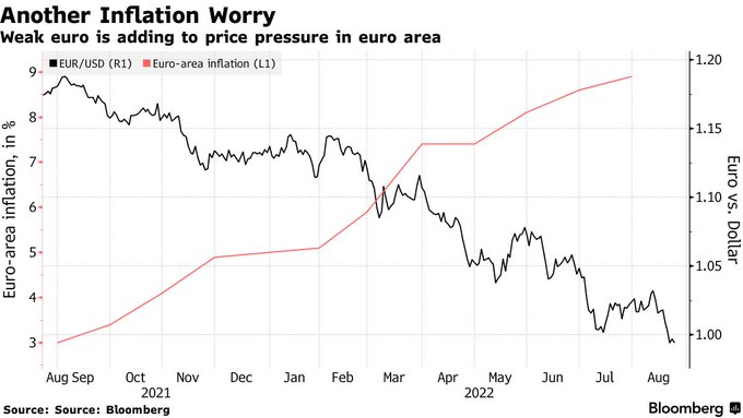 The euro is languishing below parity with the dollar after
