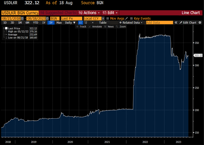 Argentina is flirting with dollarization, which is a peg to US Dollar by another name. That's odd timing given how many pegs have blown up since 2019, including Nigeria (-52%), Egypt (-48%), Pakistan (-47%), Sri Lanka (-44%, pictured) and Ukraine (-36%). This is no time for pegs