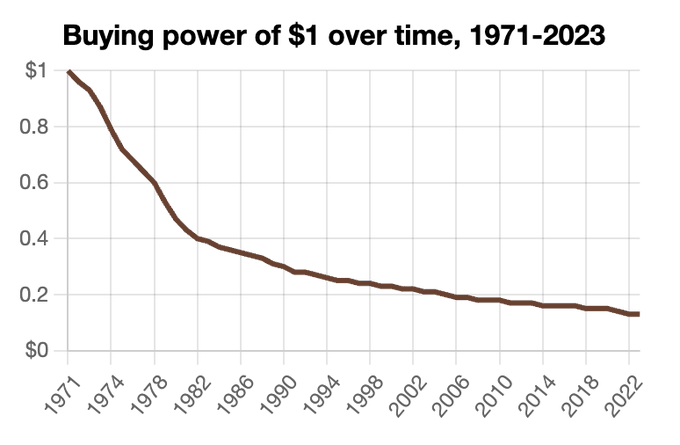 52 years ago, the US dollar was took off the gold standard and it's purchasing power has plummeted