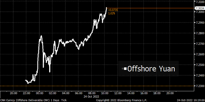 Offshore yuan weakens past 7.3 per dollar for the first time