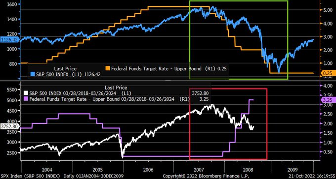 major difference was that S&P 500 (blue) sold off as rates
