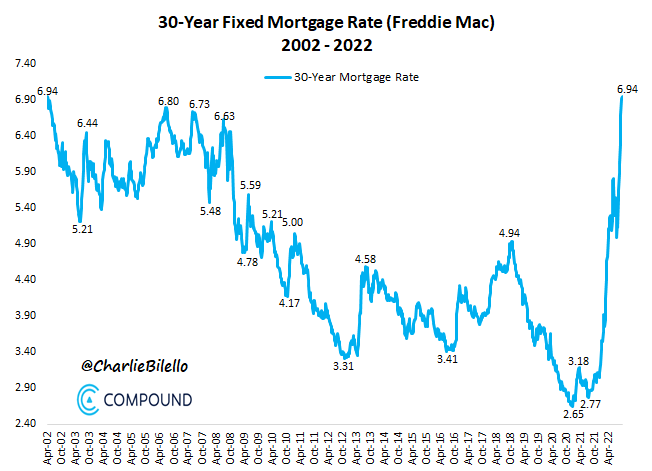 The 30-year mortgage rate in the US has moved up to 6.94%,