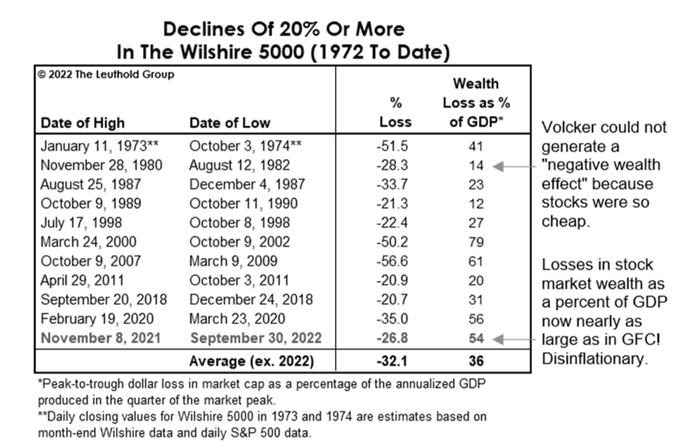 stocks. But because valuations started so high, the drop in