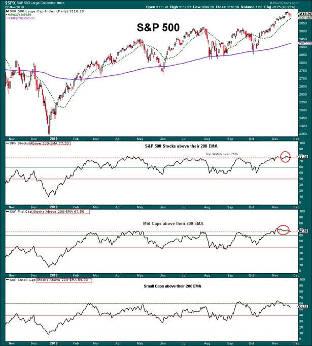 Stocks over their 200 EMA - Big Caps - 77%, Mid Caps 68%, Small Caps 54%