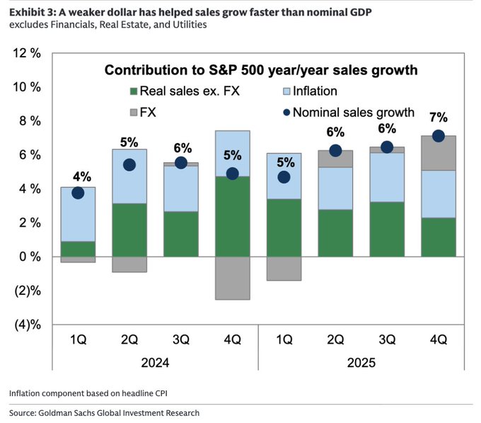A weaker US dollar has been a significant tailwind for corporate sales.
