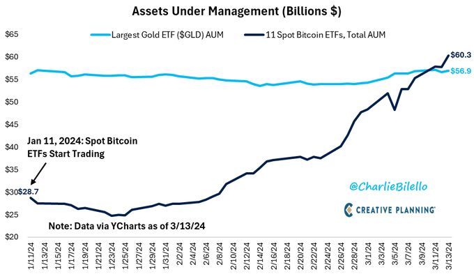 The total assets in the 11 spot Bitcoin ETFs have crossed