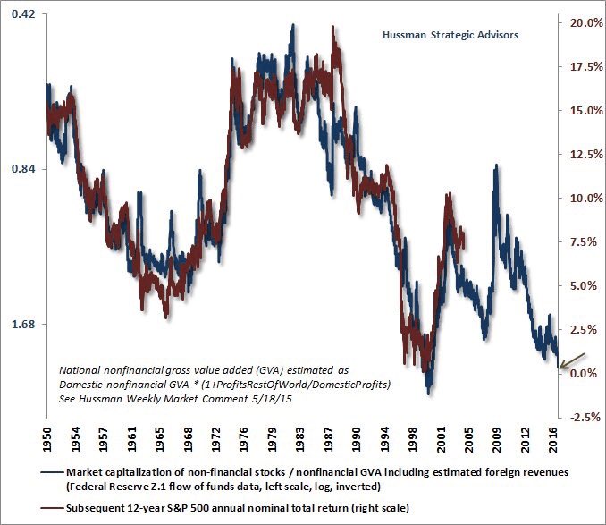 US stocks are priced to return 0% over the next 12 years, according to Hussman Advisors