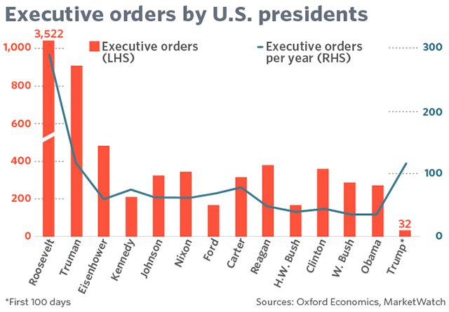 Donald Trump is on track to sign almost 120 executive orders in his first year — the most since Harry Truman