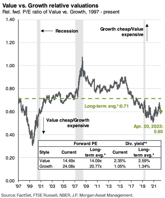 Value appears somewhat cheap on a relative basis vs growth