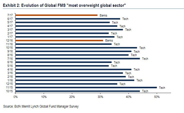 Fund Managers Survey: what is the most overweight global sector... same survey: 80% say tech stocks are "expensive or bubble-like"