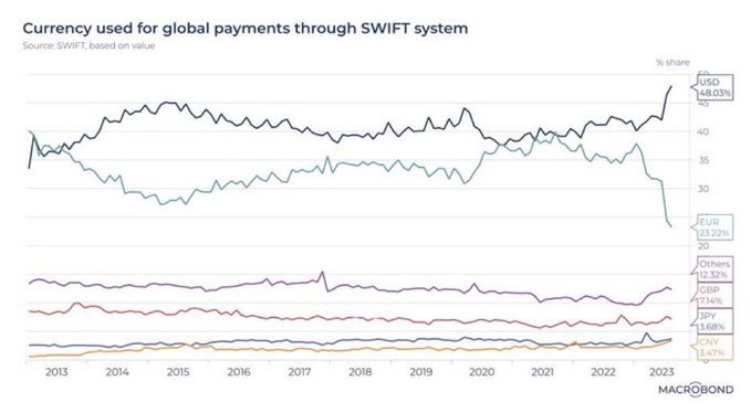 U.S. Dollar is being used in 48% of global payments, the highest level in over a decade. But BRICS…