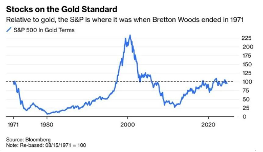 Relative to Gold, the S&P 500 SPX is trading at the same level it was in 1971 when Bretton Woods ended