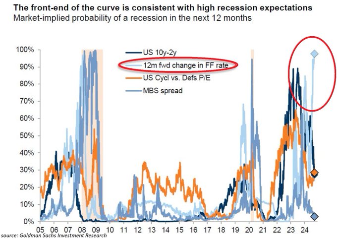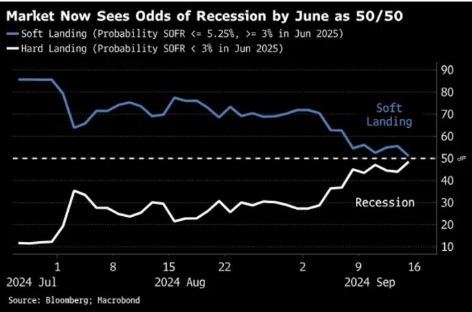 Here we go again! Market-implied odds of a recession are now 50/50, per Bloomberg and Macrobond.