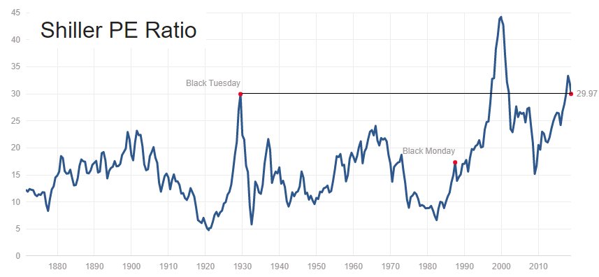 Stocks are getting cheaper. Shiller PE moves back under 30, right around pre-1929 crash levels