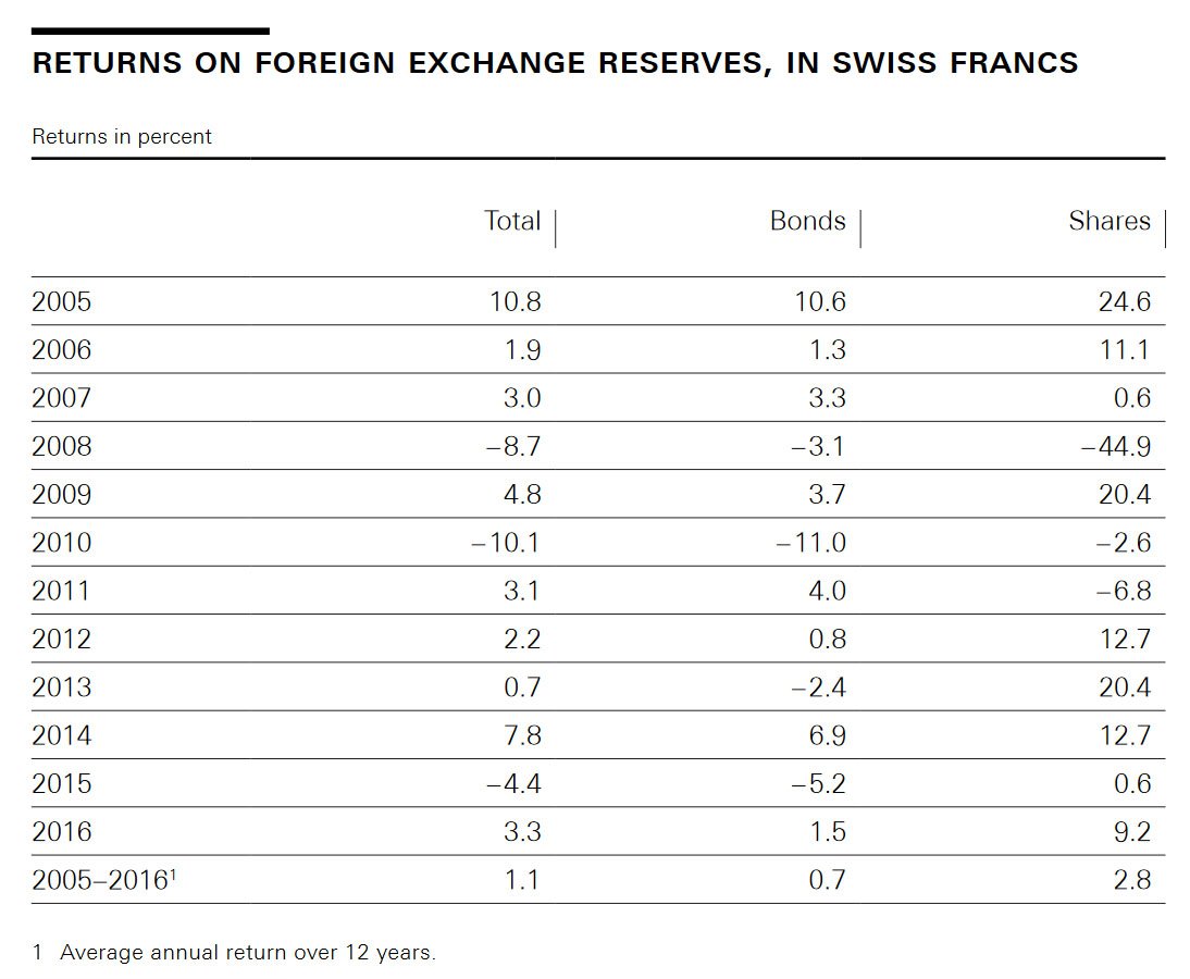 SNB returns on stocks vs bonds