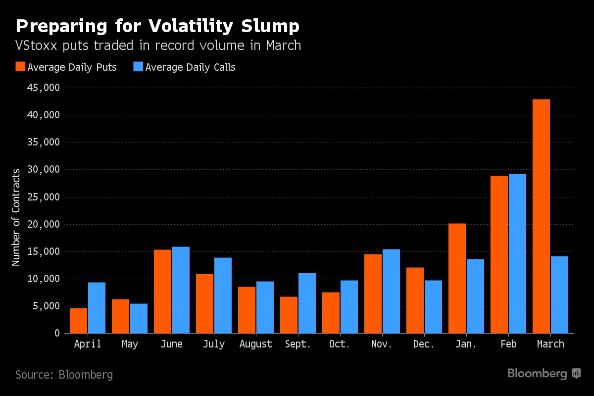 A month before France's election, traders are betting on calm among Europe's stocks
