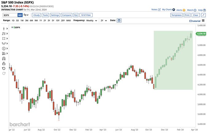 now traded green in 17 of the last 21 weeks |