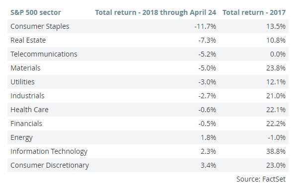 The S&P 500 consumer staples sector has 27 stocks, and all but six have had negative returns this year