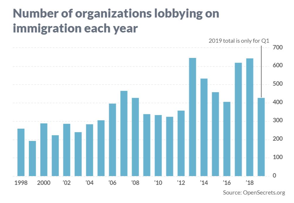 As the Trump administration tries to change the U.S. immigration system, lobbying on immigration issues has ramped up to a near-record level