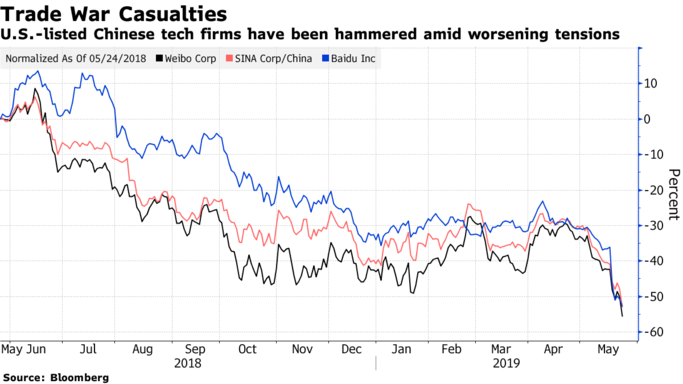 U.S.-listed Chinese stocks tumble at fastest pace since 2008