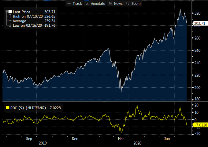 Fang stocks are down in 6 of the last 9 days. A drop of 7%