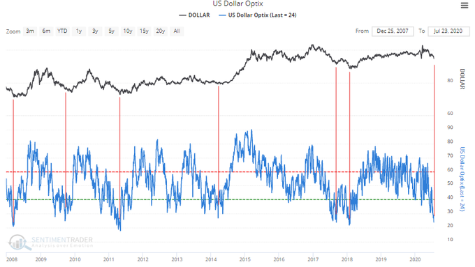 Dollar Optimism Index is at the *lowest* 1% of readings over