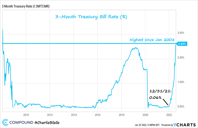 The 3-Month Treasury Bill yield has moved up to 2.62%, its